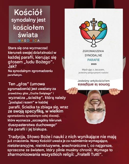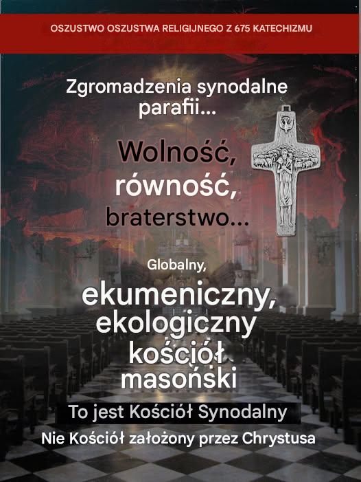 Dołączając do zgromadzeń synodalnych („wspólny spacer”) budujesz kościół antychrysta. Posłuchaj rozkazów Pana w Apokalipsa. 18,4. – ” 4 I usłyszałem inny głos z nieba mówiący:«Ludu mój, wyjdźcie z niej,byście nie mieli udziału w jej grzechach i żadnej z jej plag nie ponieśli” SYNODALNOŚĆ TO HEREZJA KOŚCIÓŁ TO MONARCHIA, a JEJ KRÓLEM JEST JEZUS CHRYSTUS KRÓL / Dwa obrazki źródło 16.07.2025 FB Mario Del Río Rengifo