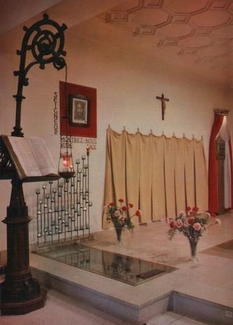 Oratorium Świętego Oblicza w domu Monsieur Duponta w Tours: powyżej, w stanie pierwotnym, i poniżej, w stanie po burzliwych wydarzeniach okresu posoborowego